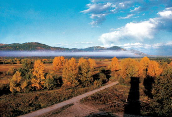 五大连池位于黑龙江省西北部的五大连池市讷谟河北岸,面积1060多平方公里,是以火山、堰塞湖、矿泉驰名的旅游胜地,也是我国第一个火山地质自然保护区,保存着世界上最完整的火山地貌,堪称天然火山博物馆。公元1719--1721年,火山爆发堵塞了当年的河道,形成了五个互相连通的熔岩堰塞湖,故名。这里有景色奇特的火山风光、丰富完整的火山地貌和有疗效显著的矿泉“圣水”,是一个集游览观光、疗养休息、科学考察多种功能的综合性天然风景名胜区。五大连地除五个堰塞湖外,还有许多古代和近代的火山。中、近期形成的火山共14座,分为东西两列,西边七座,东边七座,周围还有60多平方公里的熔岩台地。其中老黑山和火烧山年龄最小,属休眠的活火山,喷发形成于1719~1721年,另外12座都是死火山,形成于1.2~60万年前。 五大连池的五个池子,头池最小,水域面积仅0.11平方公里。头池湖水平静、清澄、碧透,山光云影倒映水中,在此可以看到“条条小鱼山间游,朵朵白云水上走”的美景。头池和二池,岩岸曲折,仿佛一条条蜿蜒的石龙伸入湖中,形成的一座座小小的石丘、石幔、石花,宛如神工鬼斧雕塑的一件件盆景,小巧玲珑,精美俏丽。 可以说五湖的风采是各有特色与风采的。头池和二池的水呈浅棕色,细看还有点淡淡的绿;三池呈蓝色,蓝中还透出淡淡的紫色;四池池水发黄,而且黄里透绿;五池呈绿色,绿中又带有浅黄。五大连池的水各呈其色,经科学考察分析,主要原因一是火山熔岩含有多种矿物质,不同的矿物质溶解在水中的颜色也不一样;二是湖底有各种颜色的沉积物和藻类,使湖水呈现出多种颜色;三是天气变化、阳光的强弱和照射的角度不同,也会使池色发生变化。 人们常常用秋高气爽、天高云淡来描述秋天季节的美好怡人,而五大连池的秋日风光却是变幻无穷、激动人心。每天的云都有不同,都给人全新的感受:有时一朵一朵硕大的云儿线条精致如雕刻的睡莲在湖镜似的蓝天灼灼然怒放,有时如一排排汹涌的浪,有时又象堆积的棉絮、轻软的绸纱,有时整个天空的云朵散开体积差不多、距离也差不多,象散落在草原上的雪白的羊群。